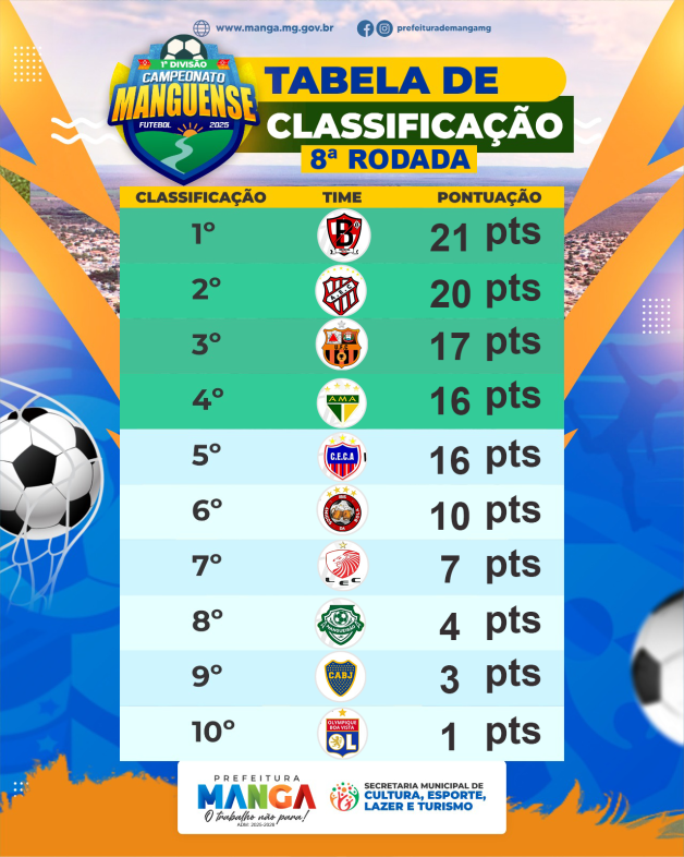 👉 Confira agora os resultados da 8ª rodada e veja como ficou a classificação atualizada após esta etapa decisiva. Cada ponto vale ouro, e a briga pelas primeiras posições promete fortes emoções até o último jogo!